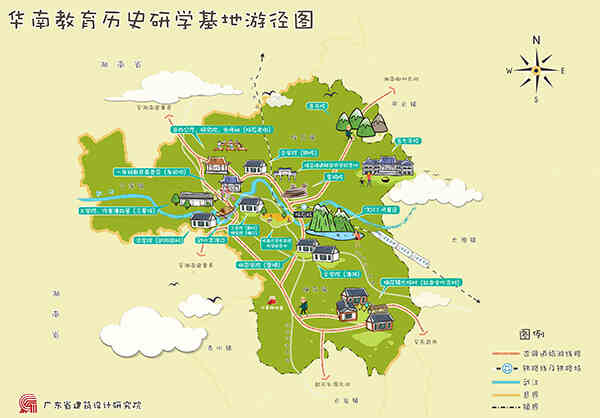 華南教育歷史研學(xué)基地(坪石)游徑圖(中山設(shè)計分院提供)。