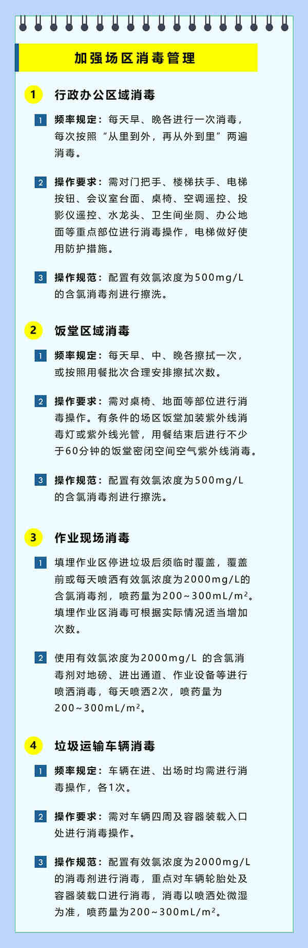 《指引》共分為九大部分,內(nèi)容包括:填埋場疫情防控特征及要求;成立場區(qū)疫情防控安全生產(chǎn)工作組;加強(qiáng)場區(qū)及進(jìn)出場車輛消毒管理;做好場區(qū)人員防護(hù)和管理;嚴(yán)格進(jìn)出場人員、車輛管理;加強(qiáng)填埋作業(yè)安全防護(hù)管理;消毒管理要求;填埋場防護(hù)物資使用及儲備管理;其他等?!吨敢分攸c(diǎn)關(guān)注2個方面,一是進(jìn)入垃圾填埋場的生活垃圾存在有疑似病例或密切接觸者等病毒潛伏期人員使用過的口罩和物品等病毒源的隱患,且填埋作業(yè)過程中產(chǎn)生的塵土或膠體可能成為病毒擴(kuò)散載體,如何控制;二是填埋場作業(yè)工人為特殊工種,難以被其他人代替,如何保護(hù)好工人不被感染是保障填埋場平穩(wěn)運(yùn)行的核心問題,從而保障城市有序抗擊疫情和正常運(yùn)行?!吨敢返木幹瞥浞终髑罅颂盥駡鲎鳂I(yè)單位的意見,強(qiáng)調(diào)實(shí)效性、實(shí)用性和可操作性。本《指引》在省環(huán)衛(wèi)協(xié)會率先發(fā)布,將成為省環(huán)衛(wèi)協(xié)會其他專業(yè)委員會(生活垃圾焚燒廠、公共廁所和環(huán)衛(wèi)清掃保潔等)編制疫情防控工作指引的模板。