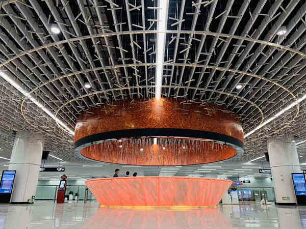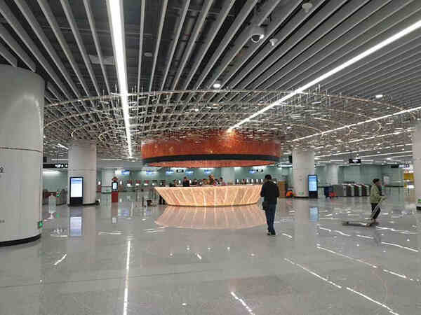 在如此大尺度的站廳空間中實(shí)施標(biāo)準(zhǔn)化的車站風(fēng)格,將難以滿足市民對(duì)C位車站空間的期許。在距離車站開(kāi)通僅剩1個(gè)半月時(shí),業(yè)主決定在保證車站開(kāi)通時(shí)間不變的前提下,對(duì)車站現(xiàn)狀進(jìn)行優(yōu)化裝修,使天河公園站成為廣州地鐵線網(wǎng)中極具特色的車站。在業(yè)主的信任與全力支持下,GDAD臨危受命,組織第三設(shè)計(jì)所團(tuán)隊(duì)用兩周時(shí)間完成優(yōu)化方案“天河星雨”的方案設(shè)計(jì)和相關(guān)深化圖紙,并配合業(yè)主與施工方開(kāi)展現(xiàn)場(chǎng)服務(wù)。經(jīng)過(guò)一個(gè)月的共同努力,項(xiàng)目如期落地。車站自開(kāi)通后立即成為網(wǎng)紅站點(diǎn),裝修效果獲得市民和業(yè)界的好評(píng),設(shè)計(jì)團(tuán)隊(duì)也收到業(yè)主的感謝信。