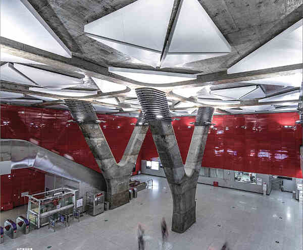 地處天河區(qū)府門前天河公園綠地之下的天河公園站作為三線換乘車站,站廳規(guī)模達(dá)2.2萬(wàn)平方米(首期開(kāi)通約1.4萬(wàn)平方米),在設(shè)計(jì)定位和設(shè)計(jì)規(guī)模上都屬于與眾不同的C位超級(jí)車站。