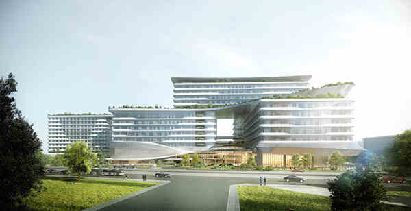 整體規(guī)劃尊重“醫(yī)、產(chǎn)、學(xué)、研”一體??漆t(yī)院的醫(yī)療、教研和會議招待三大不同功能所需,獨立設(shè)置,合理分流,實現(xiàn)防院感要求。