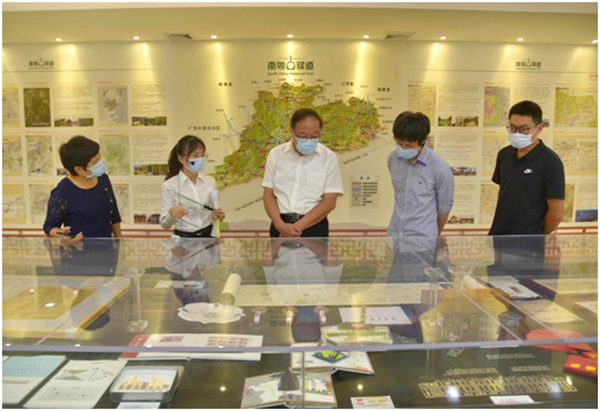 調(diào)研期間,秘書長親臨南粵古驛道展廳,參觀了解由我院承辦的南粵古驛道文創(chuàng)大賽等驛道三師系列活動的開展情況。