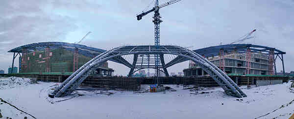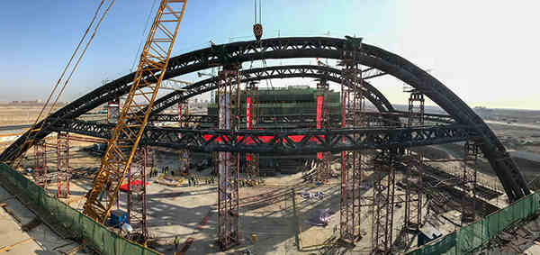 大跨度拱結(jié)構(gòu)合攏現(xiàn)場圖