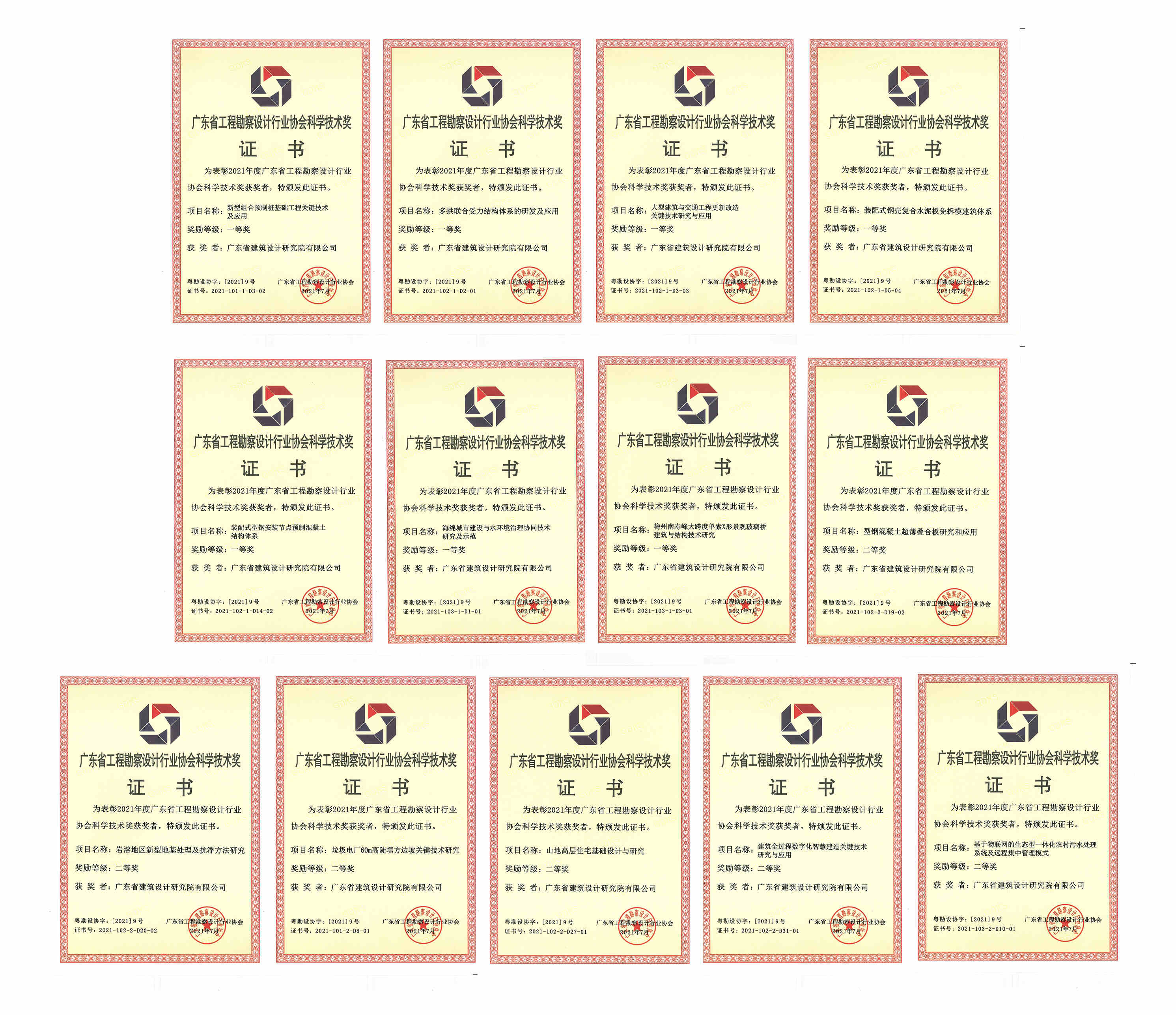 近日,2021年廣東省工程勘察設(shè)計行業(yè)協(xié)會科學(xué)技術(shù)獎評選結(jié)果發(fā)布,公司榮獲7項一等獎、6項二等獎。