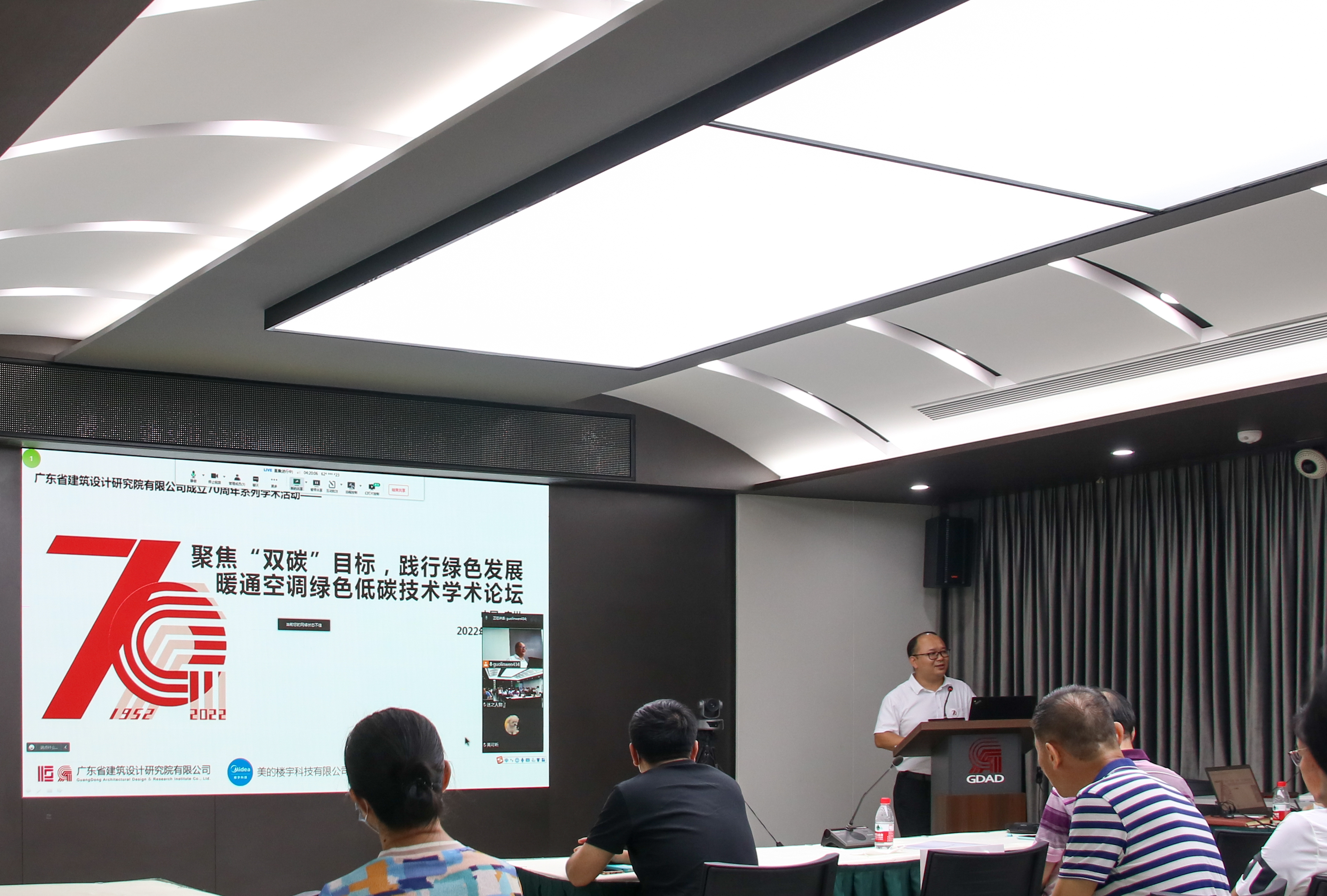 7月25日,由公司主辦的70周年系列學(xué)術(shù)活動(dòng)——“聚焦‘雙碳’目標(biāo),踐行綠色發(fā)展”暖通空調(diào)綠色低碳技術(shù)學(xué)術(shù)論壇順利舉辦。公司副總經(jīng)理、總工程師羅赤宇出席活動(dòng)并致辭,暖通空調(diào)專業(yè)總工程師郭勇?lián)沃鞒帧H珖こ炭辈煸O(shè)計(jì)大師、中國勘察設(shè)計(jì)協(xié)會(huì)建筑環(huán)境與能源應(yīng)用分會(huì)會(huì)長羅繼杰,廣州市城市規(guī)劃勘測設(shè)計(jì)研究院副總工程師劉漢華,美的樓宇科技廣州公司基建行業(yè)經(jīng)理姚學(xué)兵應(yīng)邀出席。