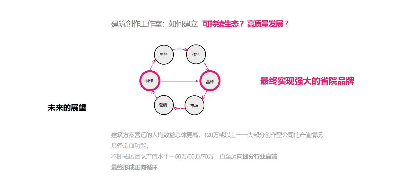 羅赤宇提出,了解工作室的實際情況與需求有利于改進(jìn)公司相關(guān)管理規(guī)定,建筑創(chuàng)作也是創(chuàng)新,應(yīng)考慮設(shè)立長期扶持機制。陳朝陽指出,建筑創(chuàng)作和科技創(chuàng)新是立院根本,從設(shè)計邏輯轉(zhuǎn)向工程邏輯,從建設(shè)邏輯轉(zhuǎn)向價值邏輯,是面向未來的必由之路。陳建飚認(rèn)為,要適度擴充工作室形成品牌效應(yīng),并制定個性化考核指標(biāo)和建立良好的人才激勵機制。