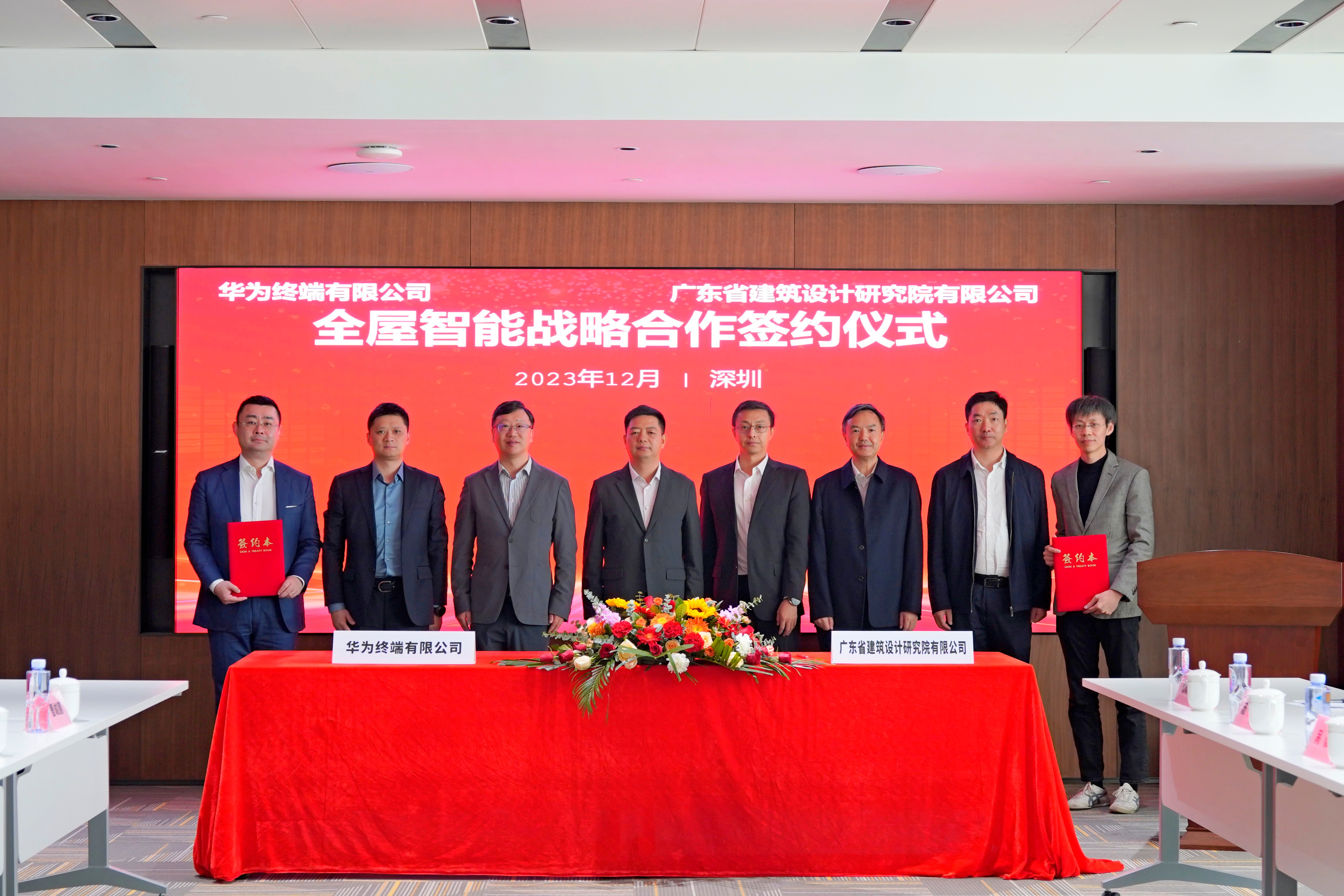 廣東省住房和城鄉(xiāng)建設(shè)廳黨組成員、副廳長(zhǎng)楊清淦,龍崗區(qū)住房和建設(shè)局黨組書記、局長(zhǎng)張穎輝,省建院黨委書記、董事長(zhǎng)曾憲川,黨委副書記、董事、總經(jīng)理李巍,華為終端BG全屋智能產(chǎn)品線總裁邵洋,華為終端BG廣東總經(jīng)理陳俊波出席儀式并見證簽約。省建院總經(jīng)濟(jì)師、規(guī)劃專業(yè)副總工程師李鵬,華為終端BG全屋智能產(chǎn)品線副總裁吳波作為雙方代表在協(xié)議上簽字。