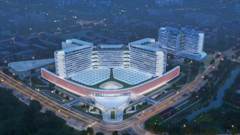 中山大學(xué)腫瘤醫(yī)學(xué)科學(xué)中心(天河院區(qū))位于廣州市天河區(qū)龍洞片區(qū),鳳凰山南側(cè),由省建院牽頭設(shè)計,總建筑面積約29.97萬平方米。項目秉承“鯤鵬意向 面向未來”設(shè)計理念,以飛鳥般的建筑姿態(tài)與鳳凰山形成建筑與自然的對話,詮釋著中山大學(xué)腫瘤防治中心征服癌癥、造福人類的偉大使命。據(jù)悉,該項目規(guī)劃了1100張病床,預(yù)計在2027年12月竣工驗收并正式投入使用。