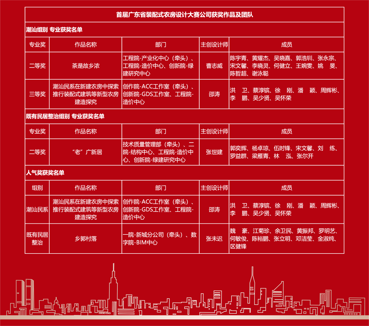 5月10日,首屆廣東省裝配式農(nóng)房設(shè)計(jì)大賽圓滿落幕。公司憑借出色的設(shè)計(jì)理念和專業(yè)的技術(shù)實(shí)力,在本次大賽中榮獲五個(gè)獎(jiǎng)項(xiàng),其中專業(yè)二等獎(jiǎng)兩項(xiàng)、專業(yè)三等獎(jiǎng)一項(xiàng)、人氣獎(jiǎng)兩項(xiàng)。