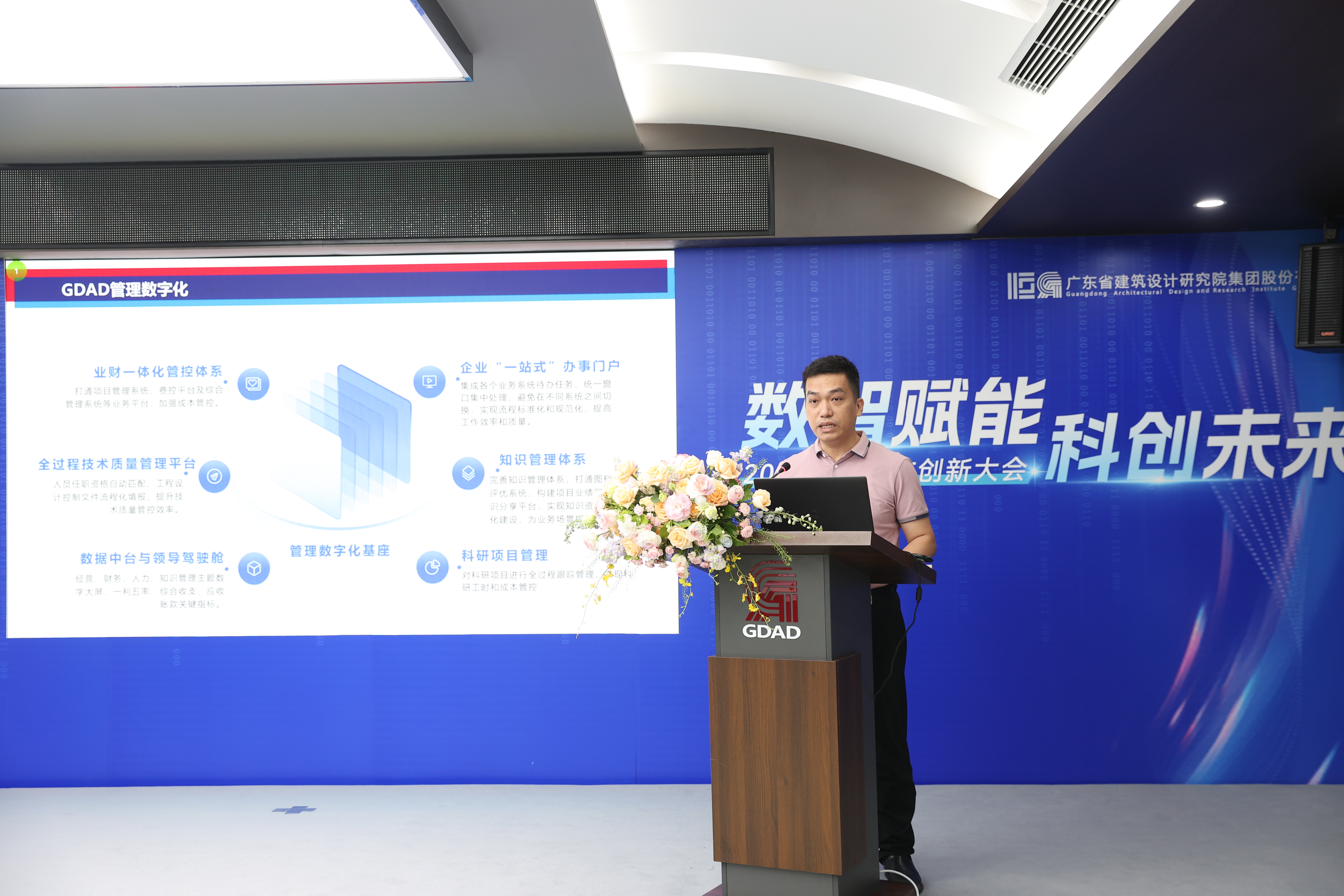 公司數(shù)字技術(shù)研究院副院長霍浩彬作《新質(zhì)生產(chǎn)力打造數(shù)字省院》主題分享。霍浩彬介紹了公司在推進管理數(shù)字化、業(yè)務(wù)數(shù)字化、數(shù)字化業(yè)務(wù)等領(lǐng)域的研發(fā)創(chuàng)新情況,重點展示了人工智能設(shè)計美麗方案、數(shù)字化推動BIM正向設(shè)計、數(shù)字化落地綠色建筑、數(shù)字化賦能工程管理等方面的研發(fā)方向及相關(guān)產(chǎn)品發(fā)布。面向數(shù)字化轉(zhuǎn)型道路,霍浩彬提出要全力塑造粵建數(shù)字化品牌,立足廣東、面向全行業(yè)、服務(wù)全國,聚集央地資源、發(fā)揮多方優(yōu)勢,著力打造公司“2中心+1模型+9產(chǎn)品”數(shù)字化品牌架構(gòu)。
