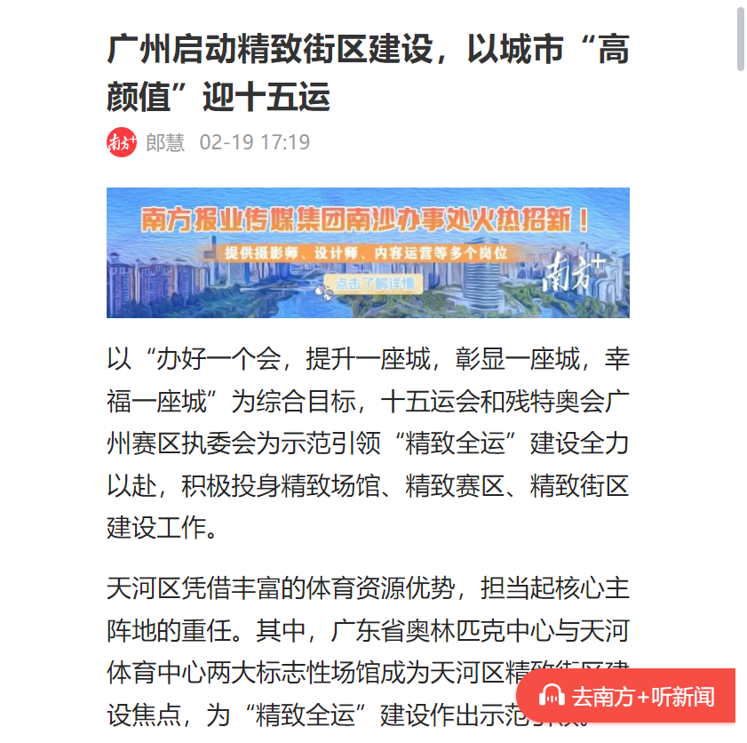 近日,南方+推出專題報道《廣州啟動精致街區(qū)建設(shè),以城市“高顏值”迎十五運》,深度聚焦集團廣東省奧林匹克體育中心(以下簡稱“奧體中心”)、天河體育中心場館周邊精致街區(qū)示范段改造提升工程。作為廣東省勘察設(shè)計行業(yè)領(lǐng)軍企業(yè),集團以技術(shù)為支撐,用“繡花功夫”推進城市有機更新,為羊城打造“精致全運”注入新動能。