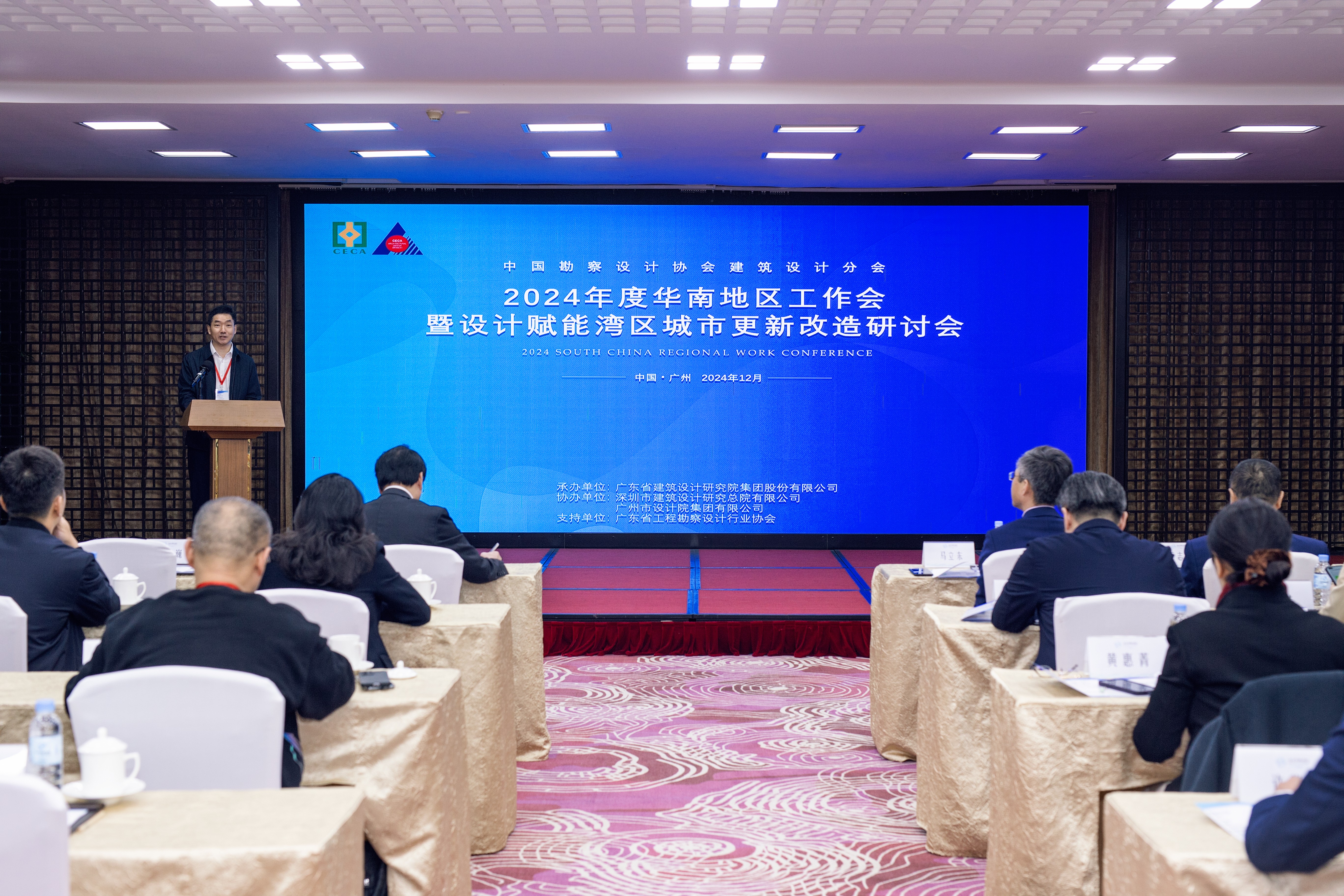 中國勘察設計協(xié)會副秘書長、建筑設計分會副會長兼秘書長馬立東,廣東省住房和城鄉(xiāng)建設廳一級巡視員陳天翼,廣東省工程勘察設計行業(yè)協(xié)會副會長、秘書長王志鋼,中設協(xié)建筑分會副會長、深總院黨委書記、董事長廖凱,廣東省建筑設計研究院集團股份有限公司黨委副書記、董事、總經理李巍出席會議并致辭。來自華南地區(qū)的會員單位代表近40人參會。