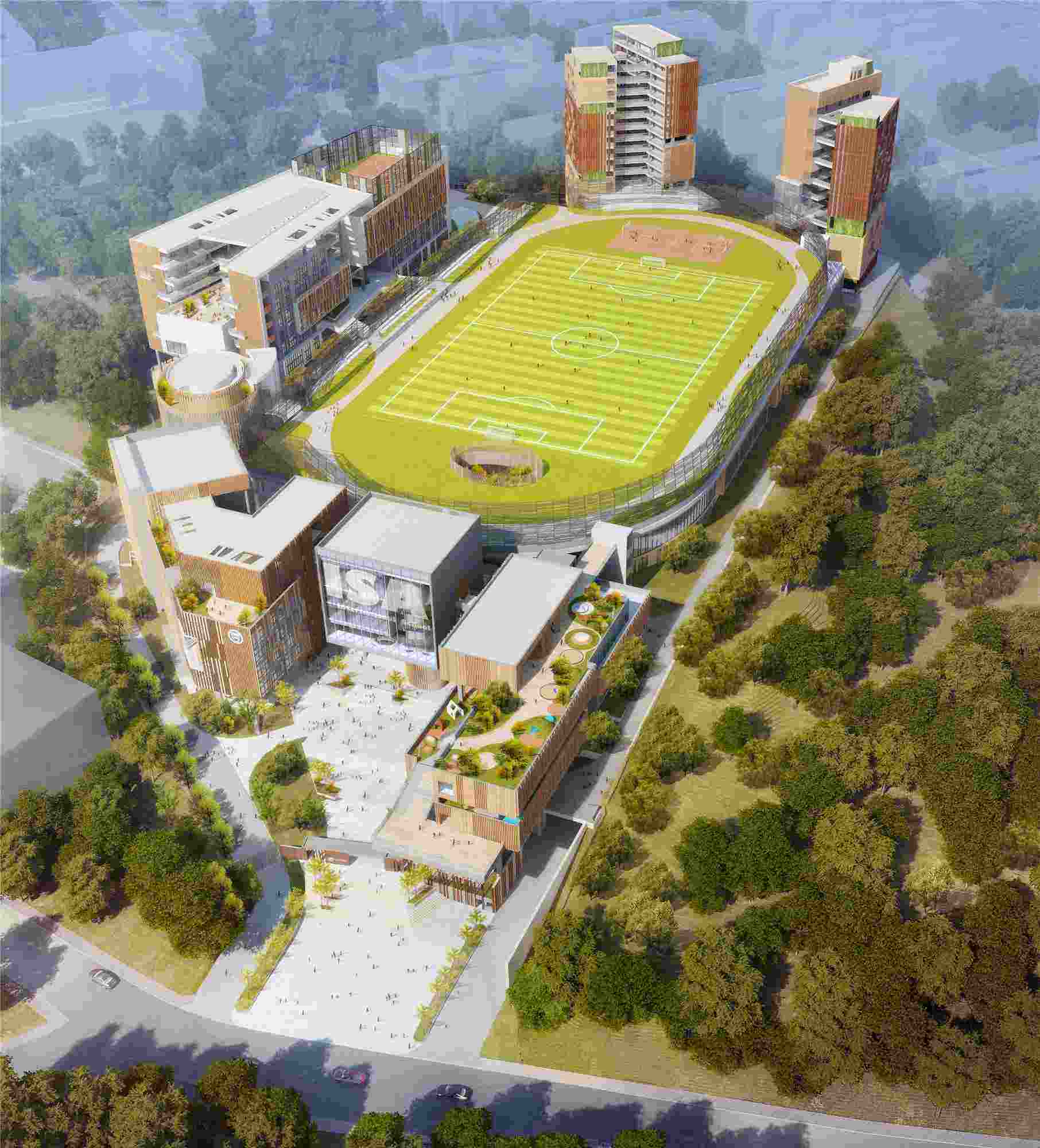 廣州愛(ài)莎國(guó)際學(xué)校暨愛(ài)莎國(guó)際教育集團(tuán)總部位于廣州市黃埔區(qū)科學(xué)城,是倫敦國(guó)際學(xué)校(ISL)在中國(guó)設(shè)立的首家學(xué)校。2018年,我公司六所承接了該項(xiàng)目施工圖設(shè)計(jì)任務(wù)。由于項(xiàng)目地塊不規(guī)則、地形高差大等困難,設(shè)計(jì)難度特別大,支部書(shū)記遲敬鳴帶領(lǐng)汪寧、范小周、謝金龍、韓超偉等創(chuàng)崗黨員凝心聚力,克服重重困難,最終順利完成了任務(wù)。