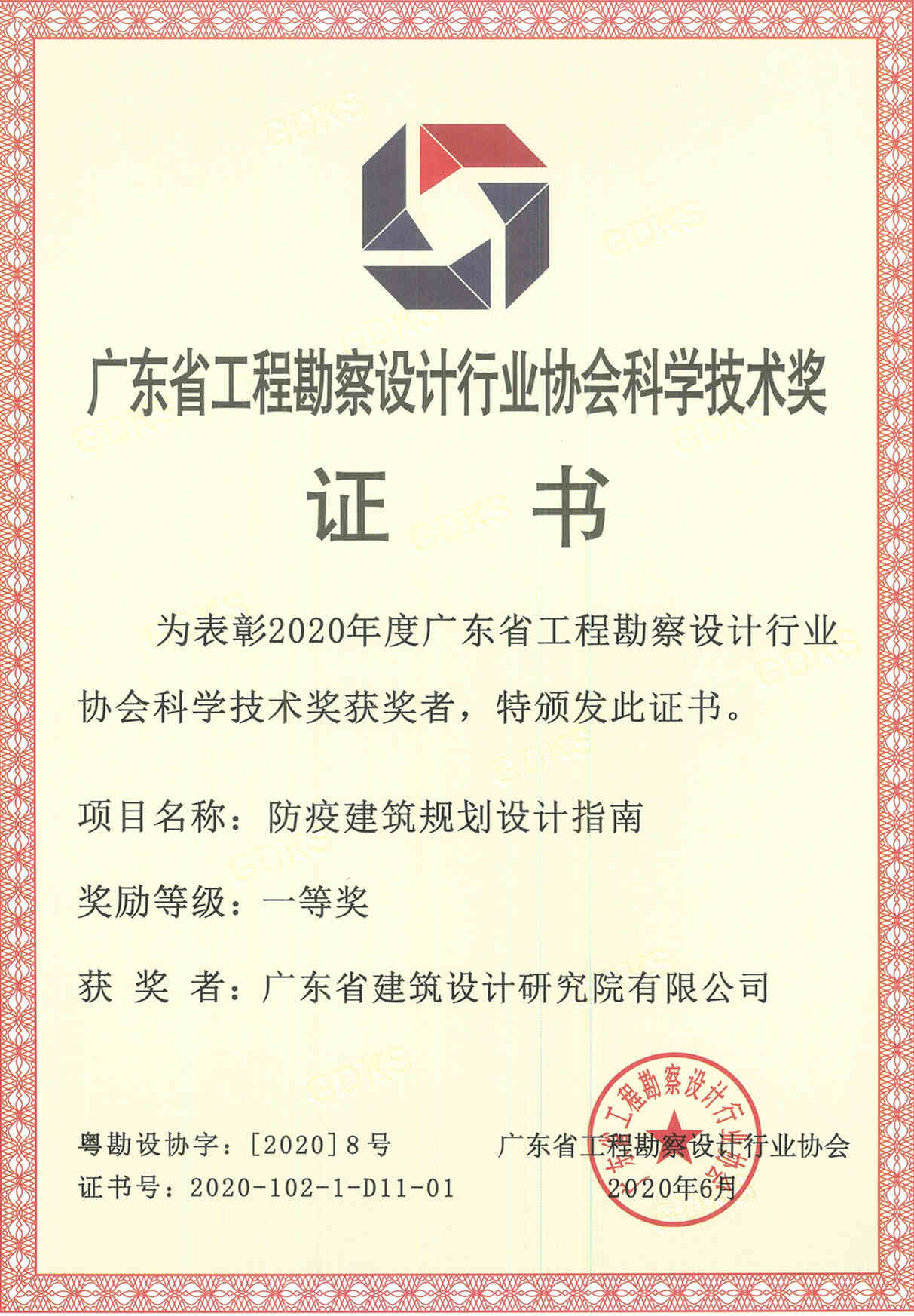 獲獎證書