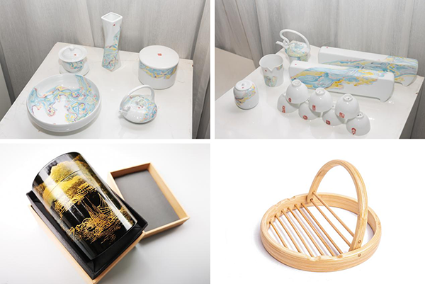 “作品制成只用了兩三天,構(gòu)思則花了一兩周。” 廣東嶺南職業(yè)技術(shù)學(xué)院的老師梁琨比次是將15件瓷器作品用泡泡紙包裝好用行李箱裝著來參評,她制作的《云中》古韻潮州藝術(shù)瓷套件,展現(xiàn)的是汕頭五個古鎮(zhèn)(鳳凰鎮(zhèn)后河村、文祠鎮(zhèn)李工坑村、龍湖鎮(zhèn)龍湖古寨、古巷鎮(zhèn)孚中村、古巷鎮(zhèn)象埔寨)與河流云彩自然的融合的場景。梁琨本身是湖南人,她鐘愛中國傳統(tǒng)文化和潮汕當(dāng)?shù)匚幕?ldquo;潮州古城產(chǎn)單樅,其茶文化深入古城骨髓之中,因此設(shè)計茶具也體現(xiàn)古城風(fēng)俗特色。去年潮汕的天空曾出現(xiàn)七彩祥云,將這元素嵌入,亦是吉祥的象征。”