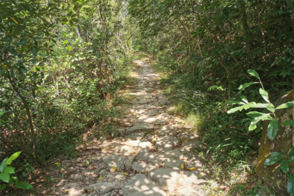 岐澳古道是廣東海上絲綢之路的重要組成部分,中山段精華部分全長5.5公里,穿越中山市唯一的、素有中山“市肺”美譽(yù)的山系“五桂山”,從東南往西北依次有“石瑩橋路界止”石碑、平逕頂建筑遺址、通衢土地廟遺址等歷史遺跡。