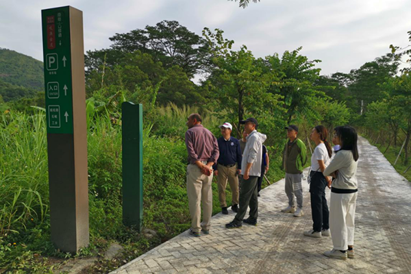 圖為技術(shù)指導(dǎo)組對五桂山精華段標(biāo)識牌提出優(yōu)化意見。