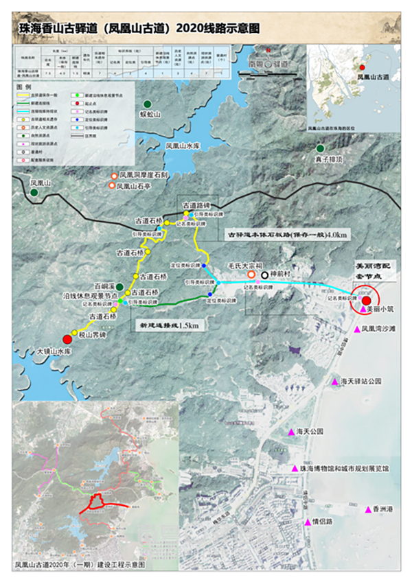 圖為香山古驛道(珠海鳳凰山段)2020線路示意圖。