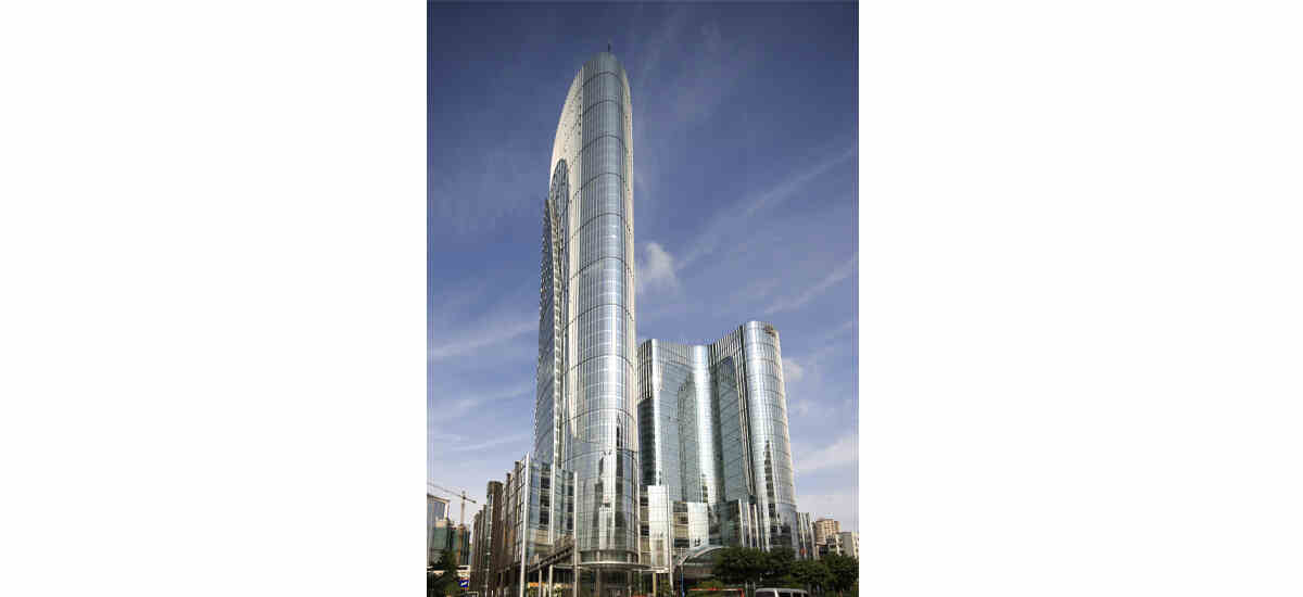 廣州天河商業(yè)圈興建的廣州索菲特圣豐廣場(chǎng),是一個(gè)集五星酒店((索菲特酒店)、甲級(jí)辦公樓、商業(yè)等為一體的大型綜合體項(xiàng)目。酒店、辦公塔樓相鄰布置,共同圍合出入門(mén)前廣場(chǎng)。辦公塔樓采用微紡錘形剖面設(shè)計(jì),以橢圓形平面為藍(lán)本逐層收分,高聳而挺拔。酒店以“L”形平面和寫(xiě)字樓組合相互呼應(yīng),以流動(dòng)的線條勾畫(huà)出優(yōu)美動(dòng)感的造型,充分體現(xiàn)了現(xiàn)代建筑的特征,同時(shí)也塑造了優(yōu)雅大氣的整體形象。索菲特圣豐廣場(chǎng)為大底盤(pán)雙塔樓結(jié)構(gòu),辦公塔樓屬高度超限建筑,框架柱全部采用大直徑鋼箮混凝土柱;大底盤(pán)裙樓柱距均較大,局部柱距達(dá)20米以上;采用鋼-混凝土組合結(jié)構(gòu)新技術(shù)。另外項(xiàng)目還使用大量能減少對(duì)環(huán)境帶來(lái)負(fù)荷的新技術(shù)、新設(shè)備,以實(shí)現(xiàn)綠化環(huán)境目標(biāo)。如設(shè)計(jì)了可通風(fēng)換氣的玻璃幕墻和門(mén)窗,盡可能地提高建筑室內(nèi)的舒適度,最大限度地滿足非空調(diào)狀態(tài)下的自然通風(fēng)效果。辦公部分采用冷凝水全熱回收技術(shù),把多余的能耗回收并利用起來(lái)。還有冷交換熱泵供水系統(tǒng)、節(jié)水潔具、智能電氣系統(tǒng)等,不僅提高了項(xiàng)目本身對(duì)于能源利用的效率,同時(shí)也減少項(xiàng)目營(yíng)運(yùn)的能耗和成本。